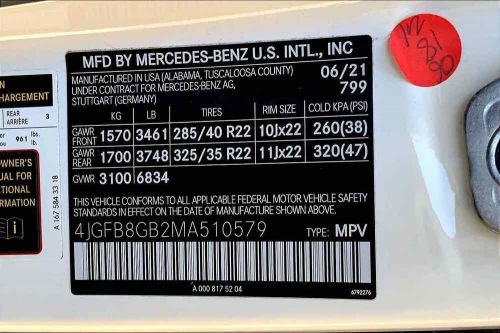 VIN (Vehicle Identification Number): 4JGFB8GB2MA510579
