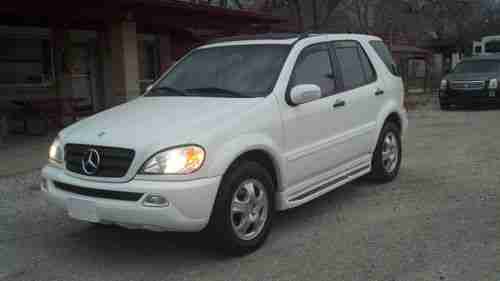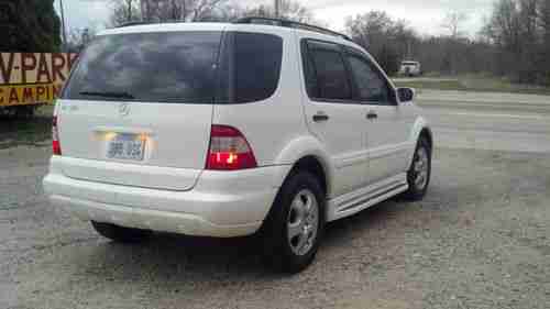 YOU ARE BIDDING ON A 2002 MERCEDES ML320 AWD VERY GOOD CONDITION IN AND OUT ALL THE WAY AROUND I HAVE NO PROBLEM WITH IT SINCE I OWNED IT TAKES ME ANYWHERE I WANT TO GO IN ALL WEATHER EXCELLENT HANDLING. I DON'T HAVE A WHOLE LOT TO SAY JUST A NORMAL WEAR COUPLES DOOR DINGS AND LIGHT SCRATCH.ALL FOUR TIRES ARE 65 TO 75 % ON IT FACTORY WINDOW VISOR, RUNNING BOARD WITH LIGHT (BLUE) AND FENDER FLARE. I HATE TO LET THIS CAR GO BUT,WITH THREE KIDS AND MY NEW BORN BABY GIRL I NEED A BIGGER CAR. THE CAR IS SALE LOCALLY I MIGHT AUCTION EARLY IF I GOT IT SOLD. ANY QUESTIONS PLEASE FEEL FREE TO ASK WILL GET BACK TO YOU AS SOON AS I CAN.!!!!! GOOD LUCK!!!!!!
