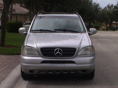 2000 Mercedes-Benz ML320 4WD 3.2 Liter V6, Silver w/Black leather & woodgrain interior, dual power 8-way front seats w/3-memory settings, smoked glass power sunroof w/tilt & shade, power windows, locks & mirrors, cruise control, ice-cold a/c, nice stock alloy wheels w/2 new front tires, traction control, roof rack, tilt steering wheel, tinted windows, dual front, rear & side airbags, anti-lock brakes. This is a Florida truck and runs great and it is an Autocheck Assured vehicle and qualifies for their Buyback guarantee. BUY-IT-NOW $6500 OBO!!!