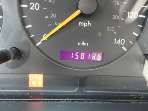 Has transmission problems, 40 MPH maximum speed due to transmission. Fuel gauge does not work. Crack in front bumper. Minor dings and dents. Warning lights are on for Traction Control, Alternate Break System, and ETS. Check Engine light on due to transmission problem. Rear doors only open from inside. CD and cassette players do not work. AC unit has a minor leak. Rear struts were recommended by Benz dealer. Was reliable car until transmission went a few weeks ago. I've been diving with the ABS, Traction Control, and ETS warning lights on for several years without problem. Good tires. Nice heated front power seats. Power sunroof. Body panels in fairly good condition. |
