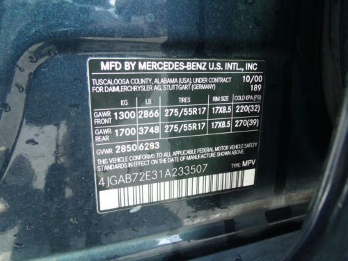 Today I have a 2001 MB ML430 V8 auto 7 SEATER (THAT FOLDS UP WHEN NOT NEEDED), Clean Title with 82000 + miles (Im driving it every day so will go up a few hundred miles ) , this is a low miles very well maintain and everything works ,no check engine lights, runs smooth , no smoke , no leaks , idles perfect , cold A/C , power everything , seat warmers and hot heat for the winter , leather is great no rips or scuffs, no rot anywhere ,this one is a AWD (all wheel drive) so no need to shift into 4x4 it is on 4x4 all the time , with the option of low range gear for heavy snow or towing , it comes with a hitch. I am a Dealer and I drive all my vehicles for a few weeks before selling just to make sure everything is ok or at least I will tell you what it needs , this one is so good that I gave it to my wife to drive my kids around but it's time to sell it , all liquids are good ready to go cross country today ..... How ever as all used vehicles it has a few parking scuffs here and there nothing crazy just normal wear , the only thing it needs to make it 100% is hood shocks , they are not holding the weight of the hood and have to hold it by hand until replace .