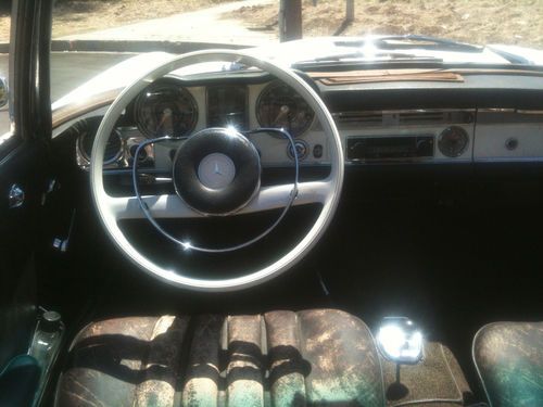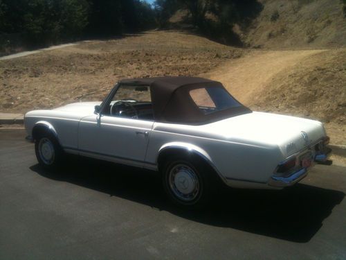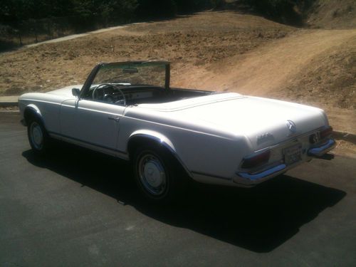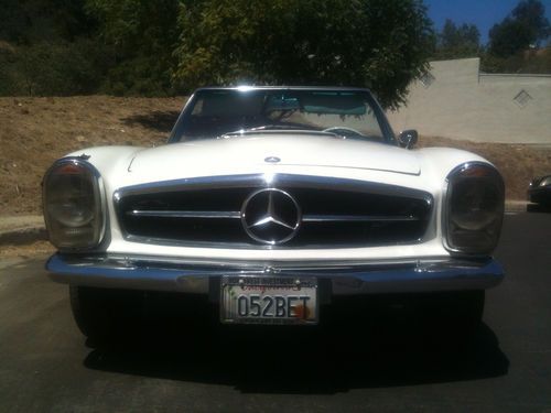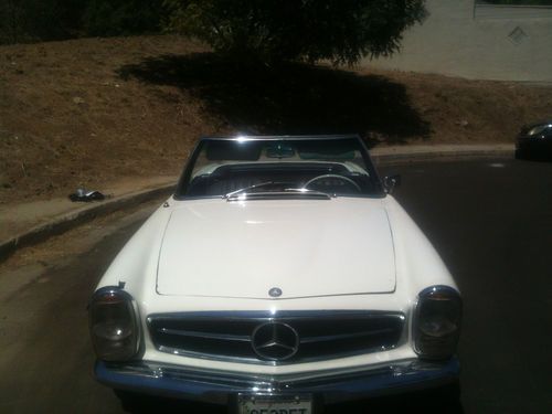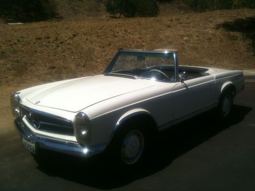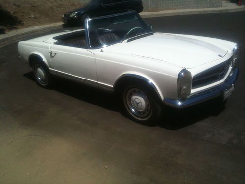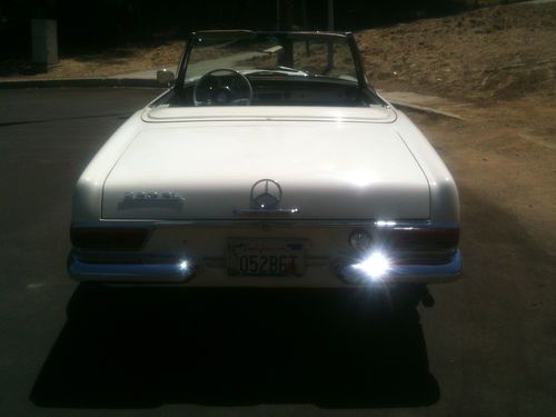 You are bidding on a 1964 230sl Pagoda (w113 body type). The engine is 2.3 liter inline 6-cylinder gasoline powered with an automatic transmission. The exterior is a creamy white and the interior original brown leather. It is a European model, with single-piece glass headlamps, 3-point safety belts and instruments in metric units. Odometer reads 72370, which is in kilometers. This car includes both the removable hardtop and a dark brown highest quality "German cloth" soft top that was replaced in summer 2010. Full sized spare tire in trunk, original Mercedes toolkit ( see photo) and service manuals included. I have also installed a hidden engine kill-switch to discourage theft. The original radio was placed with a cassette deck/radio in the early 1970s. The radio works, but neither the cassette nor its included microphone are functional. The antenna was snapped off, but it is included. I do have complete service records since my purchase of the car in 2007, as well as some service records from previous owners. This car is used, and being sold AS-IS with no further liability nor responsibility from the seller following the purchase. I love this car, and drive it once or twice a week. Feel free to ask questions!