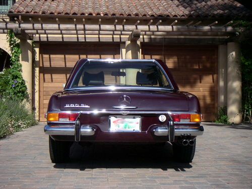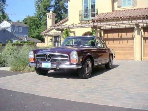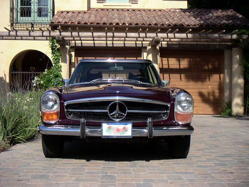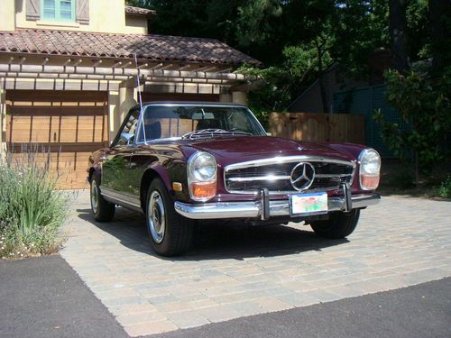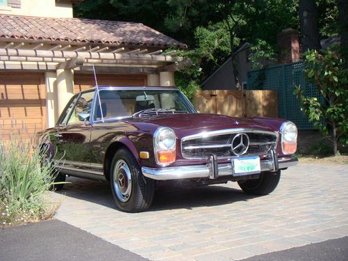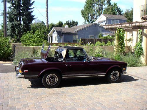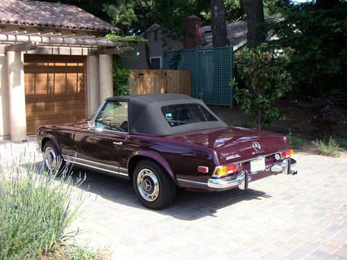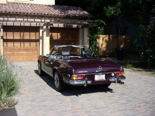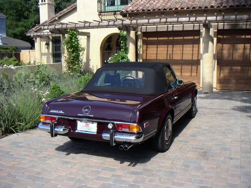 1971 MERCEDES BENZ 280SL MAROON CLASSIC, EXCELLENT EXAMPLE of a well maintained car, an excellent example of the classic 280SL Mercedes Benz Pagoda in Maroon exterior and Black interior with wood accents. This car comes with two tops and the original Becker radio. It also has the optional 3rd seat (Kinder Seat). Every thing works. The body is in perfect shape with no dents. It has Power Steering and 4 disc power brakes. The car was originally owned by a Southern California lawyer and the second owner is a Silicon Valley executive who has owned this car since 2000 and is now selling his cars to move to overseas. Mercedes celebrated the 50th anniversary of the Pagoda model this year and 1971 was the last year they built this iconic model.I start the auction at a low price with lower reserve than market value.