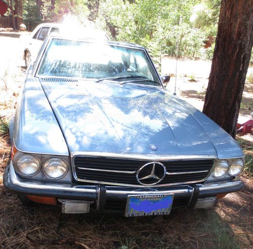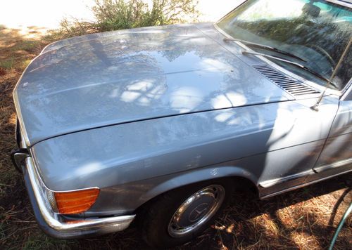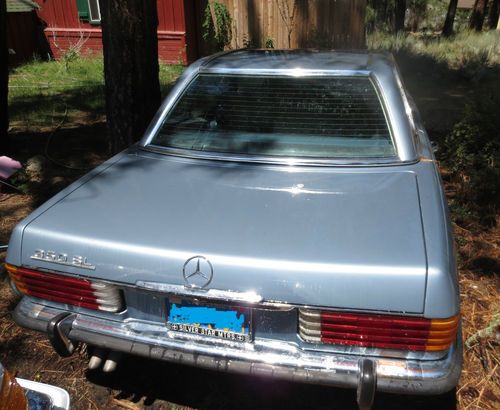 Up for auction is a 1972 Mercedes Benz 350 SL Two Seat Roadster Hard and Soft Convertible Top ! This is the highly sought after early production model with European bumpers was built in September, 1971 in Germany. Made prior to the catalytic converter regulation so the 4.5 Litre V-8 at more power and more horse. It is California SMOG exempt and comes with the old blue license plates. The hard top and soft top are included and the soft top could use a cleaning as could the car. The vehicle comes with a clear California Title and spent most of its life in the Sacramento, California area having been transported from Hawaii. It was purchased in January, 1972 and was driven daily prior to donation a few months ago. A few drops of three sap from the pines in the yard but it can come off easily and this MB roadster will shine once again! I will upload some more photos once I relocate the hard top crank lock. The vehicle will come with a great deal of service records and maintenance records. John Ralich, at Silver Star motors has been the supervising mechanic since 1989. This vehicle was donated. The exterior of the vehicle is Mercedes Benz Blue. Windshield was Green Tinted at Horizon Glass in Sacramento. The automatic transmission shifts through its gears nicely. Here are just some of the recent service records performed by Silver Star Motors in Sacramento. Nothing but the best for this one! They include include: At 202,850 miles, replaced a/c compressor, Freon, a/c hose, starter, breather hose, valve cover gaskets, spark plugs, ignition points, battery, pressure senser ($2851) At 213,184 miles, replaced fuel lines ($119) At 215,088 miles, replaced fuel pump fuses wiring, short, bad wiring repaired ($63) At 218,252 miles, replaced spark plugs and pressure sensor. At 218,435 miles, installed console Bosch alarm including power door locks, console, carpet covers, ($1711) This was done by a radio and auto alarm location and not at Silver Star. At 222,701 miles, replaced receiver/dryer, R-12 Refridgerant, A/C Dye, Ignition Switch, filter, oil, ($565) At 237,799 miles, replaced power steering seal kit, hydraulic fluid, p/s high pressure hose, power steering power hose, all three v belts (10 x 1160; 10x1000; 13x825), Rear Crank Seal; Steering Gearbox Seal Kit; Front Pump Ring, O-Ring, O-Ring, Hydralic Fluid, Output Shaft Seal, Trasm, Aluminum Seal Ring, at ($1619) At 239,137 miles, replaced voltage regulator - external, battery clamp, battery, battery tray, oil and motor kit ($452) At 241,372 miles, replaced water hose, radiator mounting kit, oil cooler ($484) At 246,546 miles, replaced oil pressure hoses and motor oil ($368) At 246,247 miles, replaced Starter, filter, oil breather hose ($403) At 260,155 miles, replaced Subframe Mounting Kit ($125); Tie Rod Assembly ($120); Center Drag Link ($74); Control Arm Kit ($48.50); Brake Pads, Oil, Grease etc. ($1356) At 264,265 miles, replaced ignition points ($193) At 266,816 miles, replaced the pressure sensor, fuel sending unit, cork gasket etc ($1993). At 271, 206 miles, replaced friction disk, transmission filter, transmission pan gasket, a/t valve body calibration kit, hydraulic fluid, part cleaner, contact circuit, grommet, transmission gasket, battery ($1623) At 272,182 miles, replaced spark plugs, points, ignition wires (set), filter, oil ($572.29) Nothing but the best for this one! The parts alone are worth the price of reserve by far! Please see my other auctions and thanks for looking! Please note that the winning bidder is to pay a nonrefundable $500 deposit via Paypal within 24 hours after purchase on Ebay. The balance is due within 7 days with cash or certified bank check. If check, we must wait for the check to clear before we release car or the clean title that we have in hand. No hidden fees. Winning bidder is responsible for pickup and/or shipping but I can be of assistance. Please remember this is a used and vintage vehicle that should be inspected before being used. I do my best to describe the vehicle but I am not a mechanic. Please study the photos carefully. Feel free to inspect prior to bidding as all sales are final. Sold as is where is and no warranty expressed or implied. Please see my other auctions and thanks so much for looking! MERCEDES-BENZ: 1972 350SL, silver with black interior, 2 tops, very sought after small bumpers, originally purchased in Honolulu, Hawaii, the car that was brought over by a U.S. Government Employee and has been in California ever since. If you look inside the doors, you will see that the car was garaged and kept away from the elements. Description of this type of car found upon websites: This is a US car with Euro specs. This little roadster probably epitomizes the last true sports car to come out of Stuttgart. No electronic or gadgets. Just a powerful and dependable V-8 A rare find with this equipment. A true enthusiast dream. The Mercedes-Benz R107 and C107 automobiles were produced from 1971 through 1989 and were described by many as one of the best looking cars Mercedes-Benz produced to date, being the second longest single series ever produced by the automaker, after the G-Class. They were sold under the SL (R107) and SLC (C107) model names. The R107 replaced the W113 SL-Class in 1972 and was replaced by the R129 SL-Class in 1989. The SLC replaced the W111 Coup'e in 1971 and was replaced by the C126 S-class coupe in 1981. S-Class suspension was used for improved ride comfort in keeping with the overall shift towards luxury in the SL range. A convertible soft-top was standard equipment although a metal hard-top was once again available complete with "Pagoda" styling. 4520cc V8 OHC Vehicle 350SL Roadster