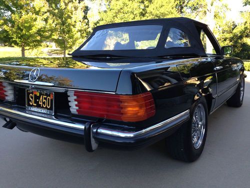 1972 MERCEDES BENZ 450SL CONVERTIBLE ROADSTER IN MINT COLLECTIBLE CONDITION. SPECIAL GERMAN 350SL DELIVERY WITH 4.5L V-8 MOTOR. BLACK ON BLACK LEATHER (NEW) MERCEDES BENZ CHROME SPOKE WIRE WHEELS, EURO-HEADLIGHTS/SPOILER, BOTH TOPS (SOFT AND HARD) NEW TIRES UPDATED CD-PLAYER WITH AM/FM. ALWAYS GARAGED. ALL BOOKS AND RECORDS. I HAVE OWNED THIS CAR FOR 21 YEARS. NO ISSUES JUST NEED MORE ROOM IN GARAGE, CALL JERRY FOR DETAILS 417-438-7881........