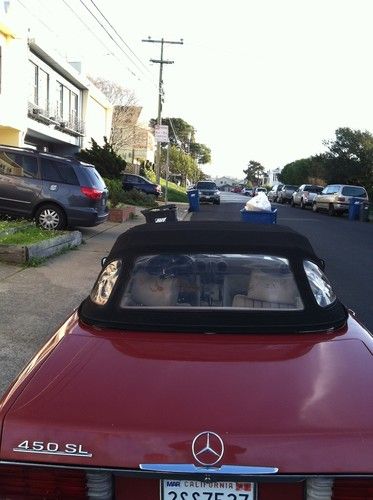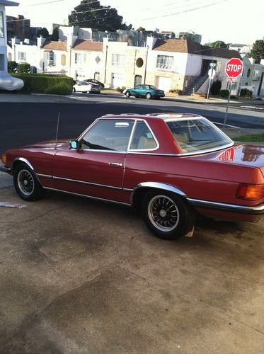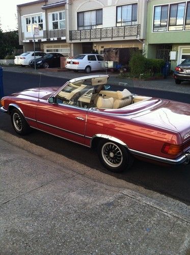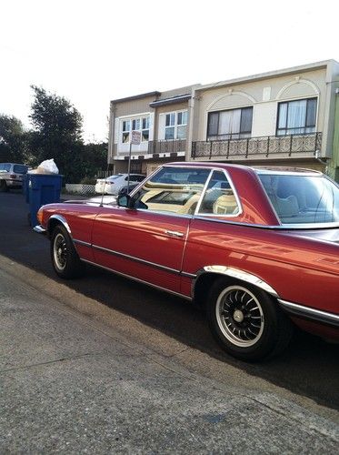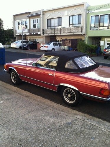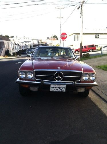 This is a 1973 Mercedes 450SL. It is a convertible with a removable hard top. It is in very good condition with no body damage and no rust. It was a California car. However, the paint is very worn in some areas and there are some chips. But no dents or scratches.