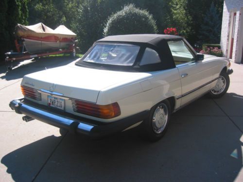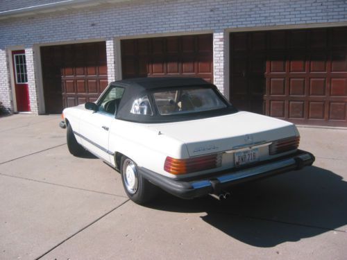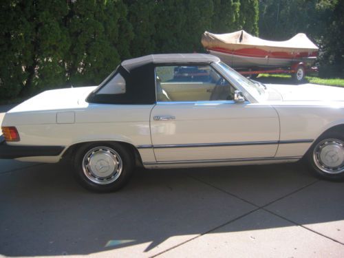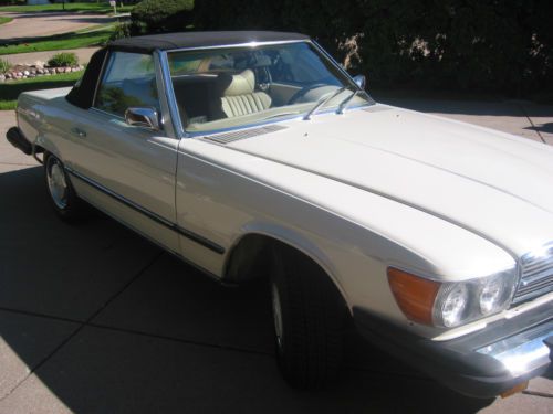 Excellent condition. 1975 Mercedes 450 Sl with only 47,816 actual miles. The car belonged to a very ill older gentleman who rarely drove the car. When he passed away the car sat for 15 years in the estate. California car. I put $7000 in just the mechanicals on the car. The work was done by a certified Mercedes mechanic of 40 years. The car runs and handles like new. The body is almost perfect. Has some minor bumps and bruises you would expect with a 40 year old car. The hard top is pictured hanging in my garage and is in perfect shape. The soft top is brand new and works perfect. The leather overall is in fine shape however there are some small blemishes on the door panels. Very minor. Cruise control, original radio, power antenna, power windows, air conditioner, heater, all in great working order. If any questions call 563-340-1090. Thanks for looking, Larry
