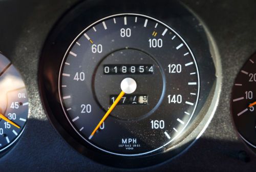 Offered for sale is an absolutely stunning, mechanically excellent, effectively one family owned 1976 Mercedes-Benz 450SL with an amazing 18k original miles and finished in rare and desirable Astral Silver (DB 735) over a red leather interior. Delivered new on February 10th, 1976 by Mission Viejo Imports to Mr. and Mrs. Eddy O’Brien of San Diego, the car would remain in their care for 29 years, used only sparingly as a weekend driver by Mr. O’Brien until his death in 2005. Having not had any children, he willed his car collection (including this SL) to his godson, a resident of Prescott Valley, AZ. When he took possession of the 450SL it had a mere 17k miles on the odometer and he continued his godfather’s limited use, accruing less than 1,000 miles in his nine years of ownership before we were able to acquire it earlier this summer. As the pictures show, the previous owners’ care has yielded an exceptionally beautiful and incredibly preserved example, undoubtedly one of the finest, lowest mileage R107s in the world. Free of any accidents, the original body is entirely straight, retaining uniform factory correct panel fits and gaps and cloaked in a gorgeous, factory correct Astral Silver finish that is deep, lustrous and consistent, marred only by the most negligible of imperfections, one of which are significant enough to appear in any of the pictures or detract from the car’s considerable overall appeal. The brightwork is in excellent original condition, as is all of the glass and rubber, and the car retains its original color-matched hub-capped steel wheels, a somewhat uncommon option for mid-1970s examples but one that is in our opinion far superior aesthetically as compared to the more common “Bundt” style wheels. Neither the hard top nor the soft top were ever used with any regularity and they are both consequently in excellent original condition. Having spent its entire life in Southern California and Arizona, the car’s original undercarriage is entirely dry and solid. The car’s interior is entirely original and equally as clean, the red leather seats exhibiting only the mild patina one would expect of a very low mileage, nearly 40 year old car and the carpets and interior panels nearly flawless. Everything works, including the power windows, power antenna, original Becker radio and air conditioning system, which still blows ice cold. The trunk is clean and entirely original, housing the spare wheel, battery box and complete original tool kit. The car also comes with all of its original books and manuals (including the stamped service booklet), a stack of service records and some of the original sales documents. Despite its sparing use, the car was always professionally maintained and is also mechanically strong, the original, numbers matching engine starting easily, idling consistently and pulling strongly and smoothly through each of the automatic transmission’s gears. Compression is excellent across all cylinders, the car drives and brakes straight and true, and the ride quality is excellent. We recently took the car on a +/-100 mile weekend jaunt up to the Santa Ynez Valley for an afternoon of wine tasting, and I’m happy to report that the car performed beautifully without any issues to note, despite the nearly 100 degree temperature. The 4.5L V8 is smooth and torquey and the car’s a joy from behind the wheel, whether tooling around town, winding through the canyons or bombing down the highway. This is an excellent opportunity to acquire a true investment grade R107 SL that checks all the right boxes for the discerning collector or weekend enthusiast: incredibly low original mileage, gorgeous and desirable color combination, strong original mechanicals and an excellent, effectively one family owned Southern California provenance. If you’re in the market for a collector quality SL, it’s unlikely that you’ll ever find a better example. We want this car to go to great home and would be happy to discuss it further and answer any questions, so please feel free to email us or call us at 805-708-2404. GOODMAN