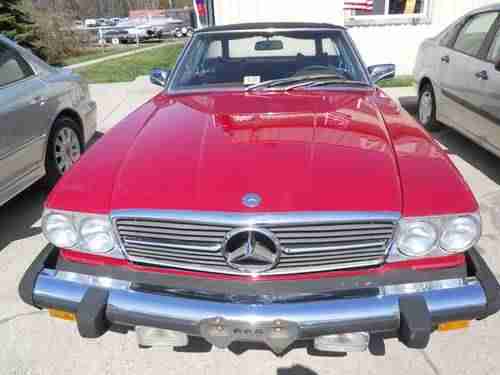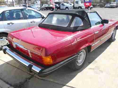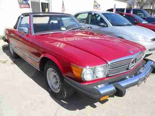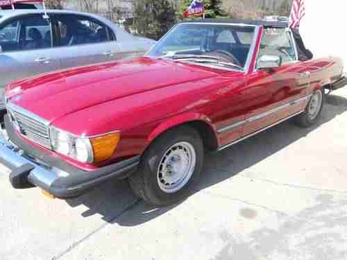 A true CLASSIC Mercedes! Beautiful Red Exterior with Black Convertible Top and Brown Vented Leather Seats and new carpeting! Low miles!