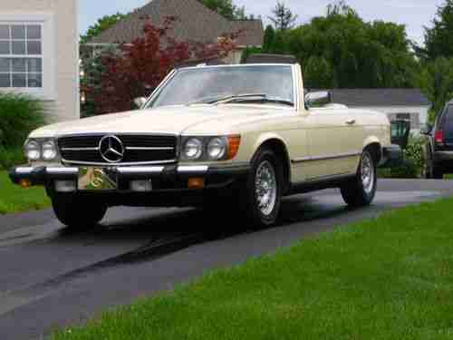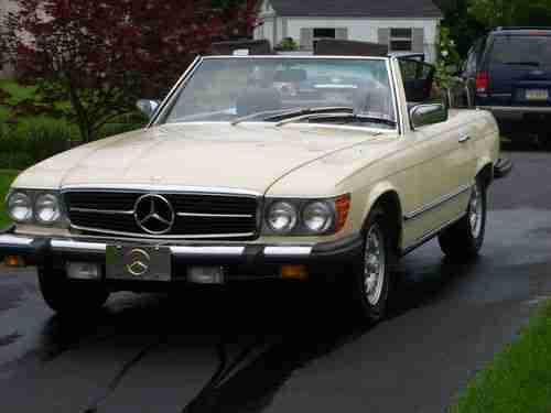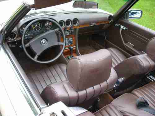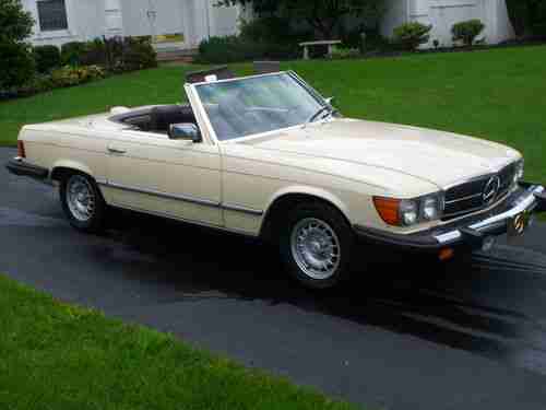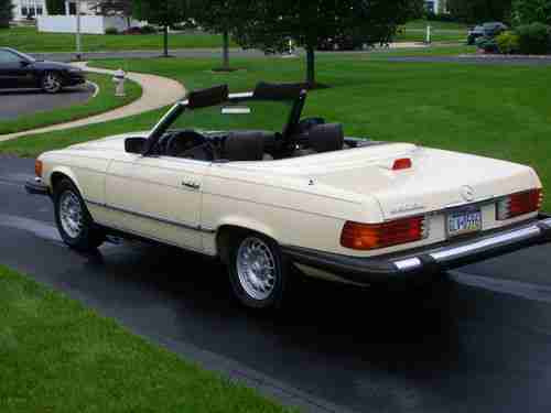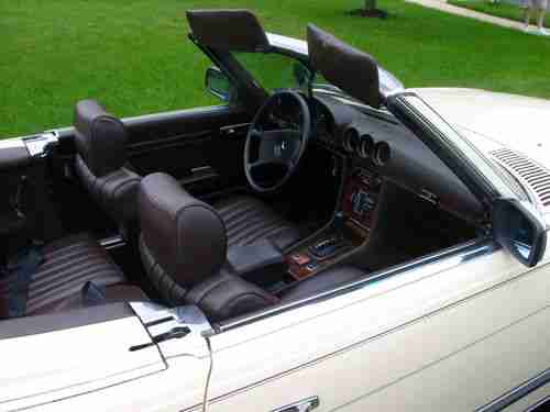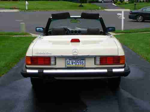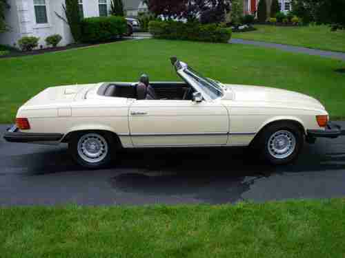 Very nice original 1981 Mercedes-Benz 380 SL. This auto has not been molested . repainted or in an accident. A garage Queen kept indoors and covered. Carefully driven by two thin women. There are no indentations in the seat. The exterior is Cream, just a few little scratches. . interior is Chocolate Brown Leather and in very good condition. The vehicle has just passed the PA. State Safety inspection. The Mercedes has AIR/ Power Windows, cruise and a removable top. This auto also comes with a garage ceiling mounted 'top holder' & Car Cover. The timing chain has been replaced. The car runs like a top and could be driven anywhere today. The canvas top needs to be replaced. Call or e-mail me to arrange a showing Thanks