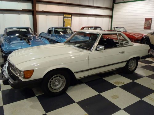 1984 White Mercedes SL380 convertible. The car is in great condition and is being sold as is from a private collection.