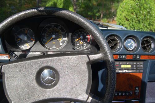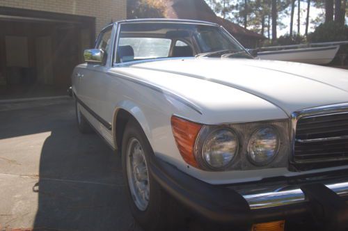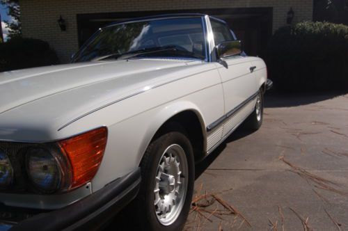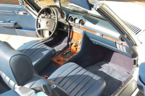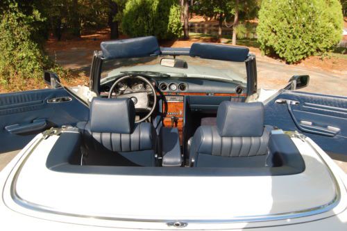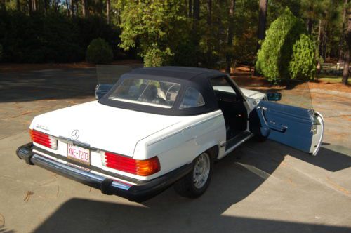 This Vehicle has been meticulously maintained both mechanically and cosmetically and driven only 52,000 certified miles. It has a clean Carfax and comes with books, original first aid kit, tools and an extra set of keys. It is finished in flawless white with immaculate navy leather interior along with impeccable woodwork throughout. It has a factory blue soft top and a matching white hard top with storage rack. It is fitted with the 3.8 liter V8 all aluminum fuel inject Mercedes engine which affords great economical fuel savings and excellent acceleration when needed. It is fitted with all the refinements available at its inception including climate control air conditioning, power steering, all 4 wheel disc brakes to mention a few. Now is the time to own this classic masterpiece with the summer finally upon us as it will afford you endless pleasure and pride of ownership not to mention a sound investment. |