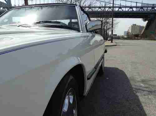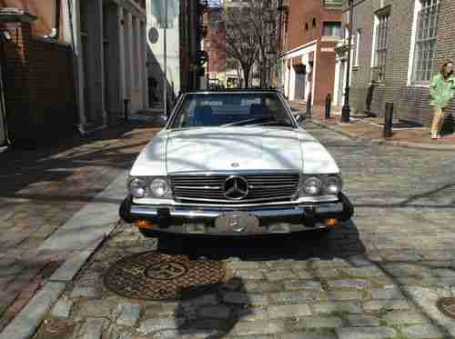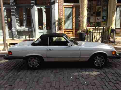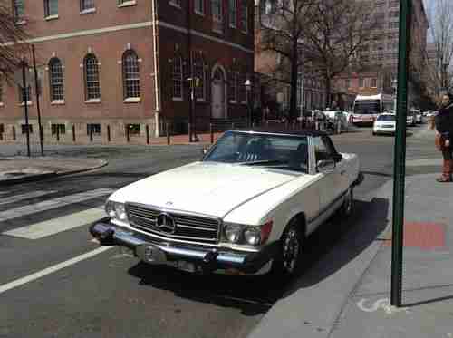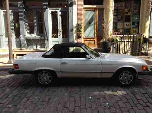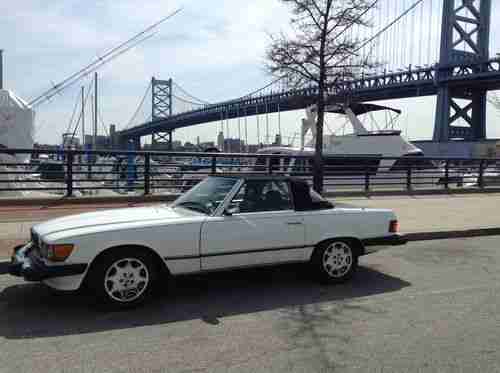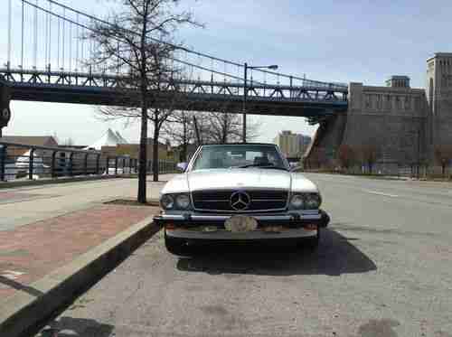 Up for Sale is an absolutely clean Mercedes Benz 380 SL Convertible with low miles. Father Not feeling his best and is letting the car he loved go to a new owner. Everything on this SL work perfectly 10/10. Starts up quick, Air blows super cold, Heater blows very warm. New Convertible Top installed 2 years ago. Full service last year. All fluids changed yearly believe it or not. Hard Top is included even though not pictured. I got as close as I could to the side of the car to show the condition of it which is free of dings or body work. Never in an accident. Father had placed 5,000 miles on her as he has been the second owner for over 12 years. I do travel and will try my best to get back to your emails if of course you have any questions. Low reserve and perfect for Spring! Good Luck Bidding...BTW His Boat is not included. Good luck :c)