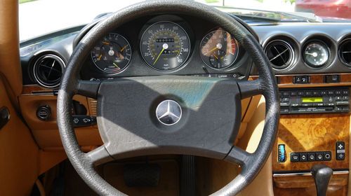 1983 light yellow mercedes benz 380sl convertible w/ removable hard top