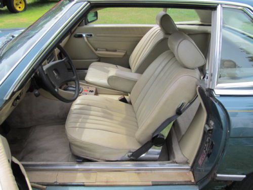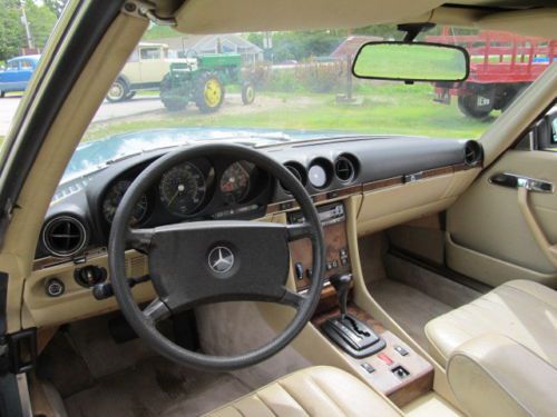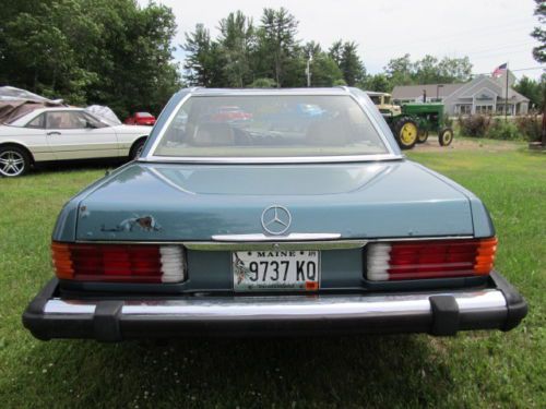 SELLING AT NO RESERVE Up for auction is this 1985 Mercedes Benz 380 SL roadster. This is the last year of the 380 model. V-8 auto loaded. Teal in color with a cream colored leather interior. This car belonged to a friend of mine who had owned it for the past 15 years. It has been in his barn , off the road since 08. He had planned on doing a restoration on the car but with so many other irons in the fire he decided to let it go. Any work that he would have had done on it would have had to be farmed out and he just didnt have the patience for it. As you see in the pics some of the left side fender parts were removed and he actually had removed the front fender. There was some rust around the bolt holes, so he pried it off . Realizing this wasn't for him he stopped working on it and left it to sit. I pulled the car out of storage , got the dust off and put in a fresh battery . The car fired right up. A lot off sunflower seeds came shooting out of the exhaust so i guess the critters made a home. Motor runs really nice , trans goes into gear fine and I yard drove the car. One brake line has been leaking but where it is a dual master car it still stops. You do get a little puff of smoke on the initial start . I would say the valve seals are probably getting tired. I asked mike how the car ran and drove when he put it up and he said it performed beautifully. He said that he went on a vacation to the blue ridge mountains in Virginia just before the car was stored . He had some service work just before the trip. Had double roller timeing chain conversion done , tune up and general going over. The car does have rust issues . Both front fenders need replacement , some rust spots on fronts of lower rear quarters, a portion of the front rocker panel drivers side where the fender bolts down low and the trunk lid. We have 2 new front fenders and 2 lower quarter patch panels that will be included with the sale. He paid $750 for those parts alone. All parts that were removed will be included. car has both hard top and soft top. Soft top is black. Battery will not be included as it does not fit the holder properly . Everything still works on the car. I feel the car is fixable depending on how nice you want to make it or would be an excellant parts candidate.We have a Maine registration and proper dealer transfer paper work for a smooth transaction.PLEASE BID ONLY IF YOU INTEND TO FOLLOW THRU WITH THE SALE. IF YOU HAVE UNDER 25 FEEDBACK CALL US PRIOR TO BIDDING. If you need more info or pics feel free to call or email us 207-324-5568 days or 207-432-2862 eves and sundays. |