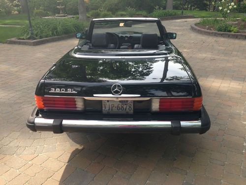 Beautiful Classic 1985 Mercedes-Benz 380SL convertible. Sharp looking color combo: black with tan soft-top. Also includes black removable hardtop. 134,000 miles. Original paint in good condition, with some small chips. Engine rebuilt in 2011. New soft-top, upgraded audio system, upgraded rims and tires, many extras. Clean interior. Looks and rides great. Always garage kept; never seen snow. Rare chance to own a fun-to-drive convertible and an affordable collectible.