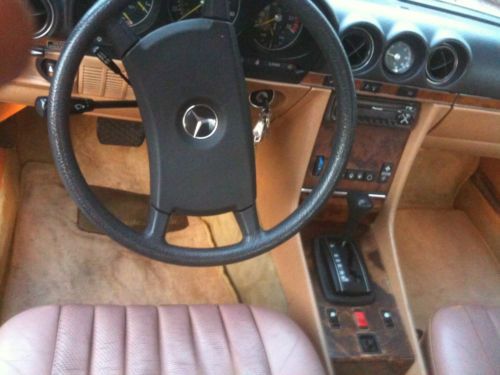 Up for sale is a 1985 Mercedes-Benz SL 380. The car is inter-changeable from convertible to hardtop. The car has recently had a tune-up. Brakes have 10000 miles on them. Tires are fairly new (approx 7/32 left).