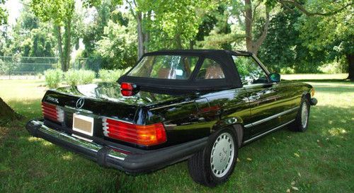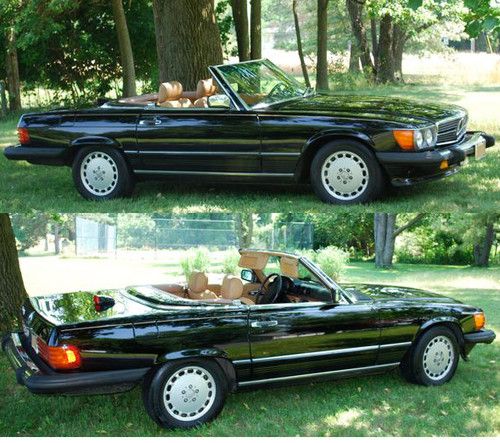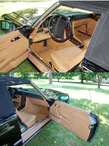 I'm offering this minty Mercedes 560SL convertible roadster. Her name is "Precious" and its quite appropriate, shes a headturner with an almost flawless original black finish. The saddle leather interior is brand new, replaced in 2011. She has always resided in the garage, driven sparingly by non smokers in southern clime (no snow), well cared for as documented in the maintenance log. Please see the details below for conditional aspects. Get yourself a classic vehicle that will have tongues waggling.