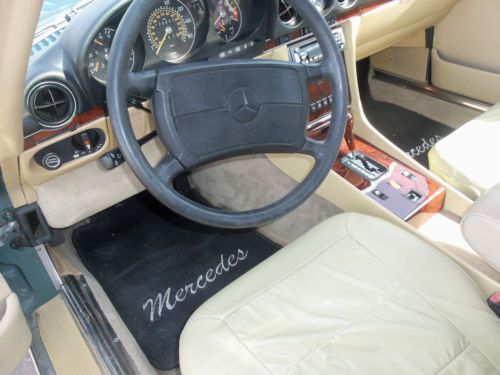 Complete new air conditioning system. New console, all new wood trim, new wood shifter. new dash cover. new tires, new battery, new shocks. radio is new with disc player. hard and soft top. Mercedes chrome rims. All original in top mechanical condition.