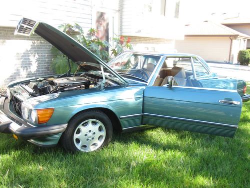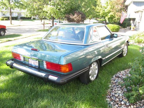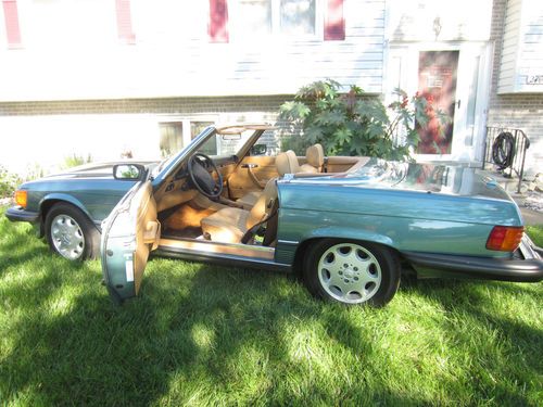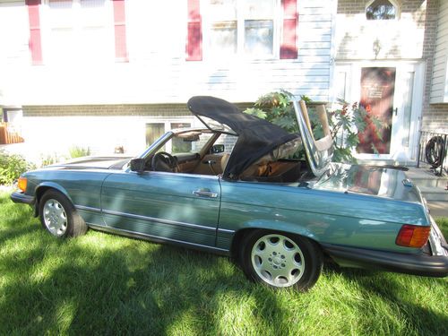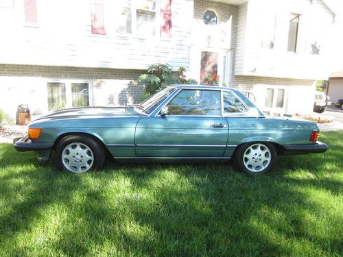 1988 Mercedes 560SL in awesome condition. All original with very low miles. This might be one of the the nicest 560 SL's you'll find. It's not perfect but it's really nice. I would rate the exterior an 8 out of 10 and the interior a 9 1/2 out of 10. Runs great. Mechanically perfect. Rare Aqua paint. Convertible top is in like new condition. Adult owned and driven. Includes the removable hard top in excellant condition. Clear title and clean carfax history. No warranty implied. Vehicle is sold as is so I encourage you to inspect it or ask questions before bidding. Bid to own and drive this awesome German Muscle car. Clear title in hand. $500 non-refundable deposit due via paypal within 24 hours of auctions end. Balance to be paid in full within 7 days of auction end. All checks of any kind must clear my bank before the car or title will be released.. This car is also listed locally so the auction may end early.
