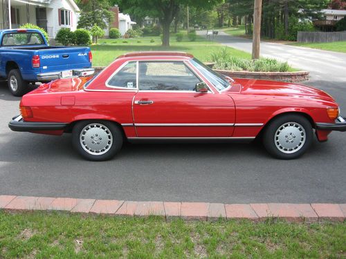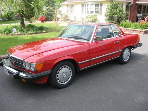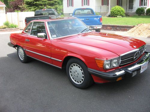 Beautiful 1988 mercedes benz 560 sl roadster red both tops nice !!