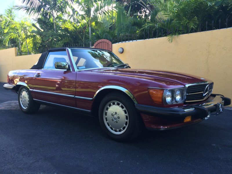 Feel free to ask me any questions about the car : coleencbbrinkmeier@v8man.com .1989 MERCEDES BENZ 560 SL finished in Garnet Red with a subtle tan genuine leather interior.