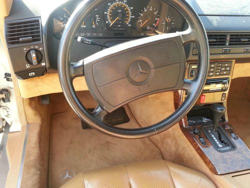 For auction is a 1991 Mercedes 500sl. The interior and exterior is in very good condition but has a few scratch and dings. I got this car about two years ago and started to get all systems up and working. The top, AC, power seats, windows and all accessories is working good. The car drives very nice but I just don't drive it all that much so it needs to go to a good home. It does not have a hard top.