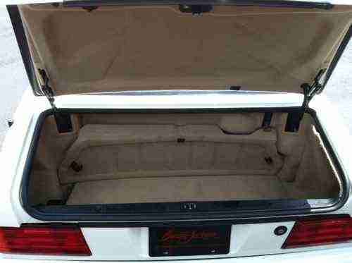 This is a very clean roadster for the year, there are no dents or scratches on the car. This was purchased at The Barrett-Jackson West Palm Beach sale. Part of their collector car series. Polo whitle exterior, with a black soft convertible top and Palomino tan leather interior. This is a very desireable roadster. Automatic transmission, with AC, cruise, elec window, CD player in trunk. Leather roll bar goes up with switch or deploys in the event of an accident.