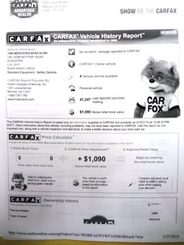 1998 Mercedes Sl 500r 42k Original Miles 1 Owner Clean Carfax Hard Top Gorgeous! on 2040-cars