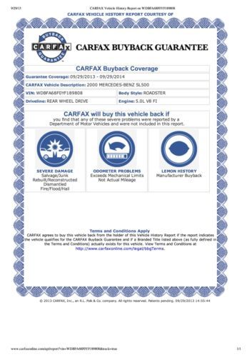 2003 mercedes-benz sl500r 48,920 miles 2-owner clean carfax 18 service records(US $21,900.00)