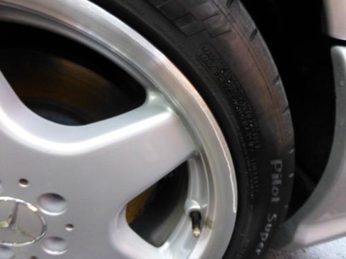 Tires replaced in January 2014, have about 600 miles on them, also Service B was completed at that time. I am the 2nd owner of this car, purchased as a trade in at Park Place Mercedes in Dallas, TX. It has been a Texas car all its life. Wheels are in great shape, a very small amount of scratches. The soft top rear window is a bit foggy and starting to crack but serviceable. It has a small dent in the rear drivers side fender, no paint damage, just pressed in. It needs front lower control arm bushings and a new hood pad. All the top hydraulics work, no leaks. The engine runs very well, no oil leaks, no trans fluid leaks. The Tele-Aid has been upgraded to digital and the transmission had the computer replaced because of a known defect, so this car shifts perfectly. I have all the records for every repair and even the original window sticker for the car when new. I bought a newer SL and this one has to go.