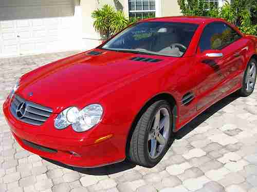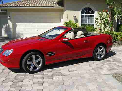 2004 MERCEDES BENZ 500 SL CONVERTIBLE, 32 K MILES, RED WITH TAN LEATHER INTERIOR FOR MORE INFO PHONE 561-313-8094