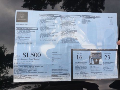 I'm selling my father in laws 2005 SL500 convertible. If you're looking at the ad, you know what it is. This is a one family owned car that has been maintained by a factory certified Mercedes tech. The sticker price on the car was nearly 100k when new! On a scale of 1-10 I would say this car is an 8-9. I'll be happy to answer all questions you have. It's the right color combo, black on black and shines like new money. There are a few light scuffs on the wheels that should buff out and I think there was a VERY tiny ding in the hood. If you buy the car and aren't happy with it, you don't have to take it, but I will deduct the listing fees from the deposit. I'm just trying to be up front with you. Thanks for looking! We reserve the right to end the sale early due to being for sale locally also.