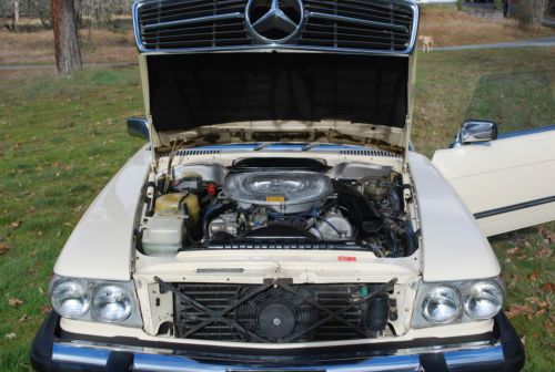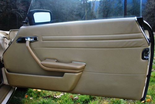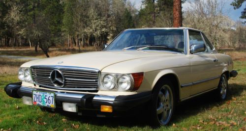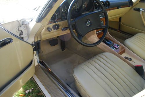YOU ARE LOOKING AT A 2 OWNER 1981 MERCEDES BENZ 380SL. VERY BEAUTIFUL AND PAMPERED CAR. THE MERCEDES RUNS AND DRIVES GREAT. THIS CAR IS EQUIPPED WITH CALIFORNIA SMOG, SO THE CAR SHOULD BE ABLE TO PASS A SMOG TEST. THE ODOMETER READING IS 86K EASY MILES. IT HAS NO HISTORY OF ANY ACCIDENTS. VERY WELL MAINTAINED CAR WITH 4K IN SERVICE RECORDS, THAT WILL SERVE YOU FOR MANY YEARS TO COME. THE MECHANICAL CONDITION IS EXCELLENT WITH ZERO LEAKS. CHOCOLATE BROWN SOFT TOP IS GREAT, VERY EASY TO RAISE AND LOWER. I HAVE PICTURES OF IT, IF YOU WOULD LIKE I CAN SEND THEM TO YOU, I JUST COULDN'T FIT ALL THE PICTURES IN THE AD. THE HARDTOP IS EXCELLENT AS WELL. ALL WINDOW GLASS IS GREAT AND ORIGINAL. THE CAR IS A PLEASURE TO DRIVE, PLENTY OF POWER, SMOOTH AND RESPONSIVE SHIFTING FROM THE TRANSMISSION. THE CAR IS FREE OF RUST. . THE EXTERIOR PAINT ON THE CAR IS BEAUTIFUL AND ORIGINAL, HAS A FEW MINOR CHIPS BUT NO DENTS. THE INTERIOR OF THE CAR IS EXCELLENT. THE FRONT SEATS AND DOOR TRIM ARE IN EXCELLENT CONDITION, WITH NO RIPS OR TEARS. CARPET IS CLEAN. THE DASH HAS NO CRACKS. ALL INSTRUMENTATION, GAUGES FUNCTION CORRECTLY. POWER WINDOWS, HEATER, A/C, LIGHTS, TURN SIGNALS, HORN, CLOCK, RADIO AND WIPERS WORK VERY WELL AND AS THEY SHOULD. I HAVE A LOT OF EXTRA PICTURES OF THE CAR SO IF YOU WOULD LIKE TO SEE THEM JUST ASK. PICTURES DO NOT DO THIS CAR JUSTICE. THIS CAR HAS BEEN WELL MAINTAINED AND SERVICED. ANY QUESTIONS FEEL FREE TO CALL ME @ 541.538.9809
