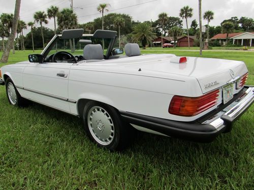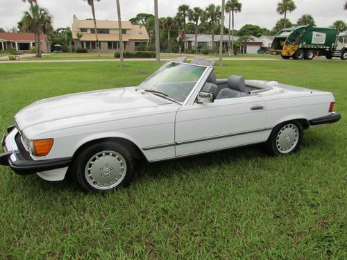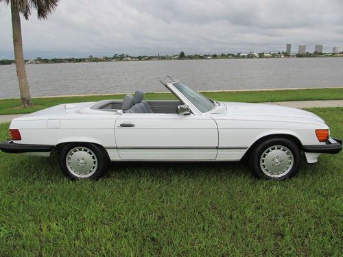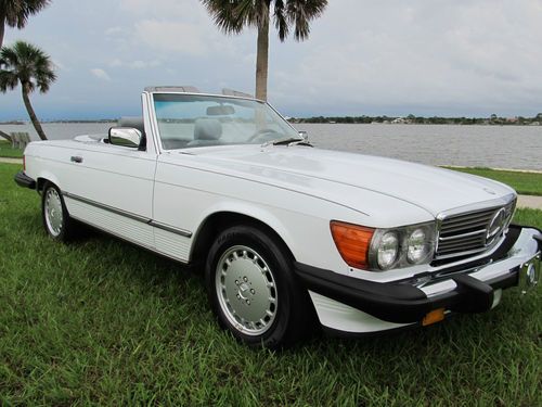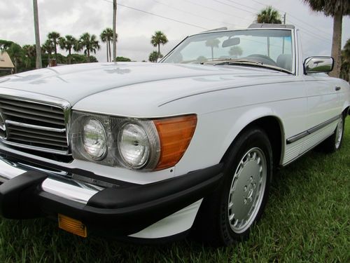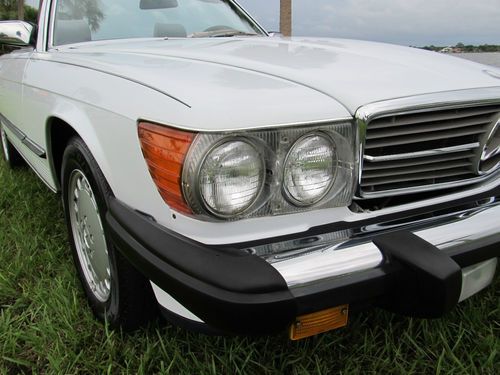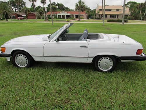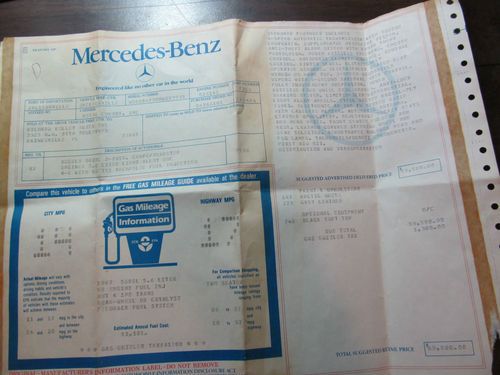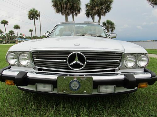 Thanks for looking at our beautiful, 1 owner 560SL that has just 38K. miles and is in excellent condition. This car was owned by the proverbial little old man. It was babied from day one and always garaged. The convertible top had never been up till we removed the hardtop that had been on for 26 years. The convertible top is the original factory roof of course. The cavity where it lived is like the day the car was made as is all the top ribs and brackets. The exterior is 100% original paint and doesn't have a mark on it. Perfect bumpers. The interior, as you can see in the pictures is like new. All of the interior chrome is glistening.. No interior damage at all. No dash cracks. Interior still smells new. Factory SL floor mats. The trunk is immaculate and the spare tire has never been down and the tool kit is still wrapped in plastic. This SL hits the road like new. They don't make them like this anymore! We have all the original books including--the window sticker, leather key holder still in the plastic, factory MB fuses never opened, proteco plate, every book it came with and the factory top spoons in the holder that have never used before! Even the factory floor mat holders in the plastic. This car was a super rare find! Great investment for some lucky person. Feel free to call us at 1 386 295 3886 or 295 3301 and we can try to answer all of your questions. Some people are asking crazy prices for theses last 560's, we have priced this car right! We do a good job on Ebay, look at our feedback. Thanks and Good Luck!!