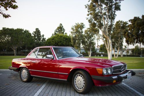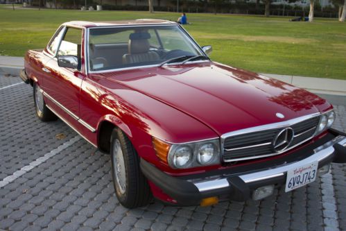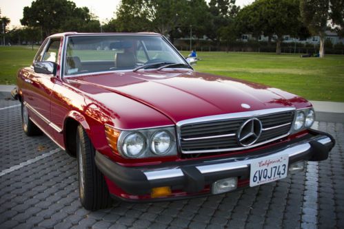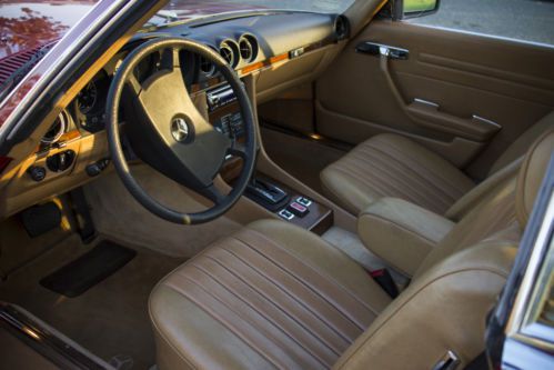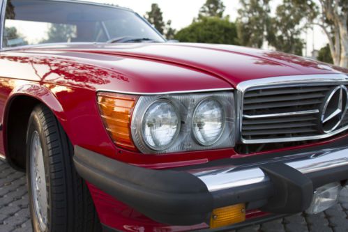 Classic Mercedes-Benz 380SL Roadster with signal red exterior and tan interior in excellent condition. No accident history, no rust, smoke-free and shows very few signs of age. Well maintained, with repair records available for last 2 owners. Runs clean and smooth, transmission recently adjusted and passed smog check with flying colors. Comes with hard and soft-top (no tears), plus stand and cover for hard-top. Equipped with power windows (and originally with power locks though not currently working). Upgraded with Kenwood Bluetooth / hands-free stereo that connects to the original power aerial. The body is in great condition (minor chips on door edges and wheel arches), clear title and current registration. Recent maintenance A/C servo - However A/C still does not provide heat Door check (driver's door) Subframe mounts (front) Front shock absorbers Rear torsion bar links Specifications Mileage: 79700 Fuel: Gasoline Engine: 3.8 V8 Transmission: 4-Speed Automatic Drivetrain: RWD Doors: 2 Private seller vehicle sold as is no warranty. |