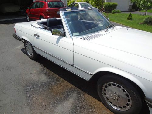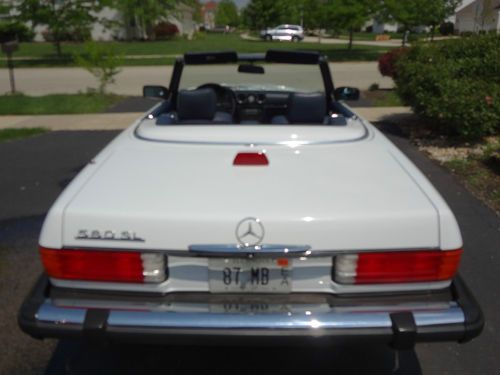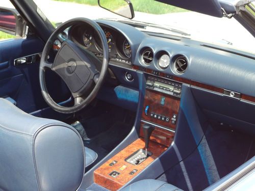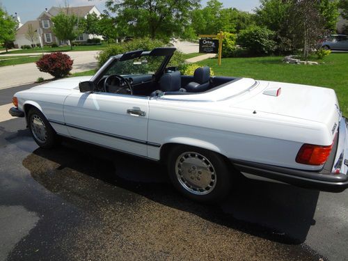 1987 Mercedes-Benz 560sl convertible. 5.6l v8 2 owner California car. All original. Was purchased from dealer in California and shipped to Illinois via enclosed carrier. Been in Illinois 5 years.. Garage kept. No snow, rain, or winter driving. Optional chrome wheels, custom navy blue leather interior, and blue soft-top. White hard top also included, though never really used. Michelin tires. Drives like new. Moving to a place with a smaller garage. This pretty baby will need a new home. 61,953 original miles.