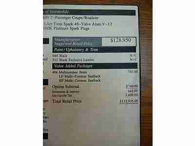 Engine:6.0L 5987CC V12 GAS DOHC Naturally Aspirated