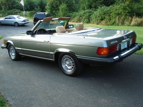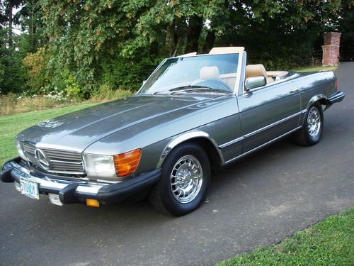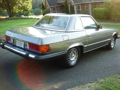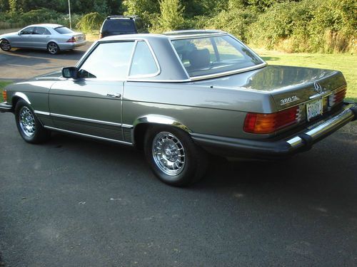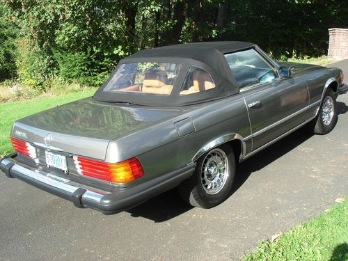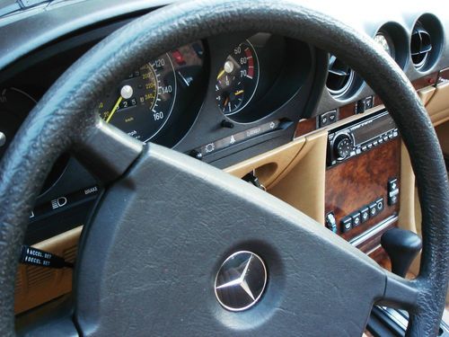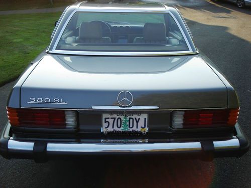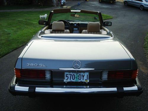Gorgeous 1984 380SL in Anthracite Grey with Palomino MB Tex Interior Black Soft top / Matching removable hardtop. Truly in outstanding condition for it's age. I purchased 14 years ago, last owner had just spent $6k on upper end work valve job / heads, etc.Car has been garage kept the entire time I have owned it. I have put on appx 2000 miles over the last 14 years, mainly short weekend drives and start ups to keep everything up. Paint, Body and Interior all extremely nice for it's age. MB Tex interior is extremely nice, much more durable than Leather, especially in a convertible. Soft top still looks like new, rear window tinged from age, but rear windows still nice and clear, no rips or tears. Mechanically strong, just drove it today and was surprised Cruise Control still works. AC Works, but could use a recharge cool, but not as cold as it should be. Windows, accessories, etc all in great working order. Gas gauge not working, which is most likely tank sending unit from sitting so long. Car looks fantastic, has it's share of minor chips, couple of light scratches but nothing ugly, only items you would expect to see at this age. Will make somebody an outstanding fun car, hard top coupe in the winter, fun convertible in the summer. I have seen many listed cheap, but usually with much higher miles, no major work done, and not in this condition. So feel free to ask questions, but no ridiculous offers. Obviously I have been happy to own her the last 14 years so not in a hurry, she needs to bring a fair price. You would spend a fortune trying to restore one to look this car !