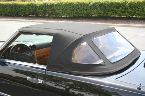 The best looking 560 SL in town. The previous owner changed the bumpers to the much nicer european version. ( brandnew stainless steel version ! ) Finished in deep black with tan interior - brand new leather seat covers - brand new soft top with all the weatherstrips/ seals. over 5.000.- $ invested in the last 6 months. ( bumpers 2.100.- soft top installed with all seals 980.- leather seats installed 1.150.-) The car was inspected everything works fine - ready to cruise the Highway - you can drive this car home from wherever you come. Get ready for the summer - in style. Can be shipped out of the country or driven home wherever you come from ! The car is sold as it is - please come and take a look. more pictures available - Thanks for looking. |