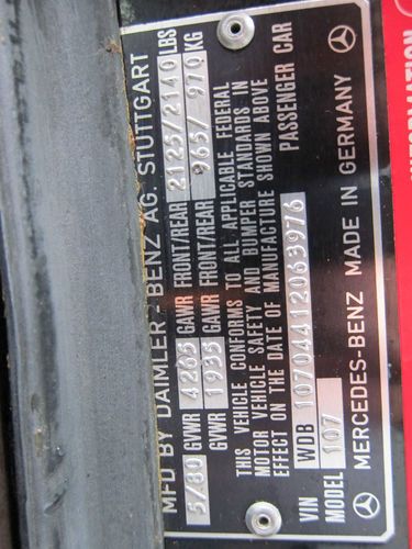 RARE FIND! LAST YEAR OF THE VERY DESIRABLE 450SL's! I am listing this vehicle for my neighbor who is the original owner of this garaged kept beauty! Only 91,628 original miles, no accidents, no stories etc. This car has never seen snow. Very well maintained vehicle with service records! My neighbor does not have an Ebay account and asked me to list this vehicle for him. Current inspection, 2-tops, hand car wash's, Pioneer /CD , Sony speakers, Michelin MXV4 Tires with aprox 85% tread remaining. The convertible top has 2 small cuts that can be repaired. The canvas top itself is in very good condition.The drivers door has a few scratches from someone leaning on the door.Production date: 5-80. Clear title in hand ready for a new owner. This is the last year of a very fast car before changing over to the sluggish 380SL's.The hardtop is not shown in the pics, however it is in excellent condition and included in this auction. Contact Allen 201-248-3818. I can arrange shipping at a reasonable rate.