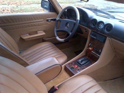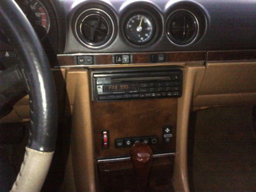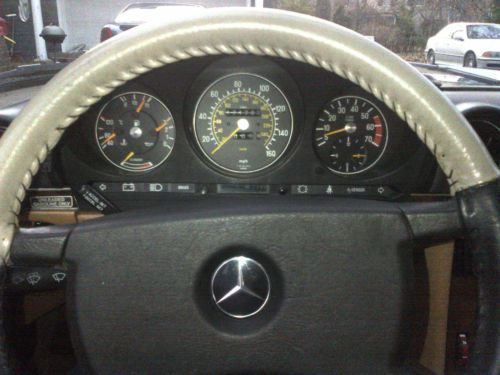 Up for auction is my 1984 Mercedes Benz 380SL Roadster. She is solid and drives great! Mechanically solid. All instrumentation and lights in operating condition. Odometer gear needs replacement. No rust. Body is in great shape. There are a few dimples from hail damage but nothing noticeable. Great summer car. Has both soft and hard tops in excellent condition. Only thing not original in this car is the stereo which has been upgraded to a AM/FM/CD Player stereo and bigger speakers. Custom tan leather interior with navy blue trim piping. Tires are good. Very comfortable riding car. Very Low Reserve. Good luck and happy bidding!