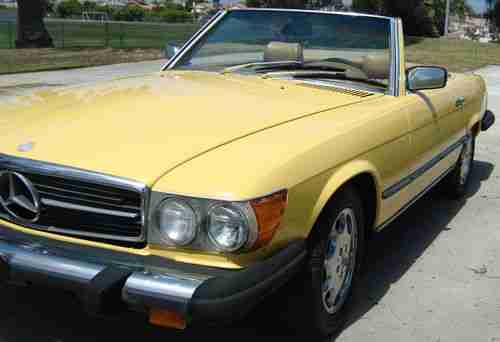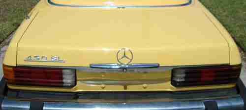 HERE IS YOUR CHANCE TO OWN A CLEAN MERCEDES BENZ 450SL CONVERTIBLE FROM SOUTHERN CALIFORNIA HAS CALIFORNIA TITLE DOES HAVE BACK REGISTRATION DUE SO GOOD FOR EXPORT HAS NICE BRIGHT YELLOW PAINT JOB KEENWOOD CD PLAYER ORIGINAL CONVERTIBLE TOP AND ALL ORIGINAL UPHOLSTERY DOOR PANELS SEATS,AND CARPET,MOTOR STARTS AND RUNS BUT COULD USE A GOOD TUNE UP AND GAS DRAINED AS CAR HAS BEEN SETTING ALL IN ALL A VERY NICE LOOKING CAR PLEASE LOOK AT ALL PICTURES THIS IS A NO RESERVE AUCTION SO PLEASE IF YOU DO NOT HAVE THE FUNDS DO NOT BID BUT BUY NOWS ARE ALWAYS CONSIDERD INSPECTION OF CAR TO BE DONE PRIOR TO BIDDING CAR SOLD AS IS WE WILL BE HAPPY TO HELP CORDINATE SHIPPING FOR ALL OVER SEAS AND OUT OF STATE BIDDERS SELLER HAS THE RIGHT TO END AUCTION AT ANY TIME GOOD LUCK AND HAPPY BIDDING
