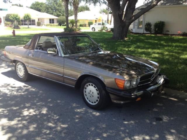 Excellent condition 1988 Mercedes 560SL with soft-top, hardtop, and toueau cover. I have installed new tires (existing tires were 18yrs old and looked new when I purchased this vehicle), new Mercedes A/C compressor, new rear brakes, and new cruise control. Car runs awesome and has been serviced by trained Mercedes mechanics. I keep it garaged with a Mercedes dust cover and she only goes out rarely and in the evenings. The Smoke-Silver color is an eye turner.