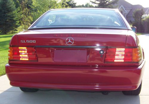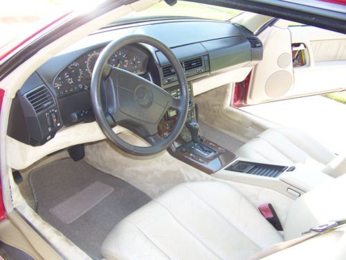 This refined road car blends strong performance with solid engineering and luxurious trappings. This SL 500 is impressively stable at speed, with a rock-solid bearing that inspires confidence. This SL also delivers a sporting feel with commendable road manners as witnessed when I personally drove her. The 5.0L, V8 engine is solid, strong and has plenty of power when needed. This car was regularly serviced and kept clean which is evident by the appearance and great drive. As you can see in the photos, the exterior paint shines like the Florida sun. May have some minor chips/dings, overall she looks great! Includes 16" alloy wheels, removable hard top, power front seats with dual memory, 4-speed automatic transmission, cruise control, fog lights, wood interior accents, tachometer, 4-wheel ABS brakes, front airbags, spare tire, jack, tools, floor mats, power tilt, telescopic, leather steering wheel, power locks, windows, mirrors, foldable mesh windscreen, headlight wipers, clear gauge lens, the original MB cassette player. Clear lien free Florida title. Interior Condition has minor wear tear but it's all original and also passenger sun visor is missing. This is a used car, NOT new. Although it is in very good condition, it does have a few imperfections. Thank you for not confusing used with "new". Buyer is responsible for arranging and paying for shipping. |