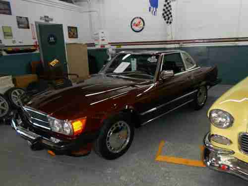 1986 Mercedes Benz 560 SL. Only one owner and only 88,181 original miles. Original books and all service records from day one even original California title. All standard Mercedes Benz options, including leather, both tops, chrome factory alloy wheels and phone. Brand new tires. Original paint no accidents clear title and clean car fax. If you are looking for an ORIGINAL 560 SL you have found it. #044465. Now on display at the home of “over the top cars” CHECKERED FLAG CLASSICS 7743 MONTEREY ST GILROY 408-847-8788 sold as-is, California buyers are responsible for sales tax and license fees.