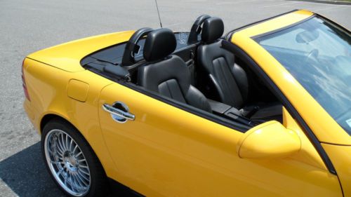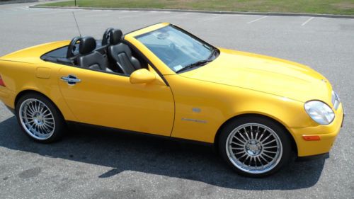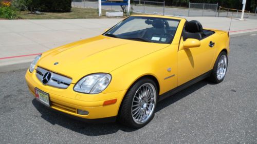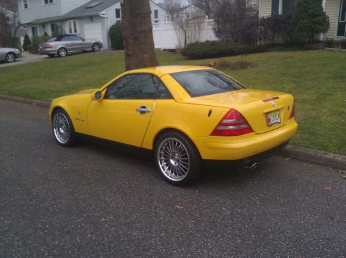 Beautiful 1998 Mercedes Benz SLK 230. I am the second owner of this car. Had the car since 2000. Has been Garaged never seen bad weather. Have all work done by local mercedes dealer. No issues with car, it rides great and is fast. Had new 18 inch wheels and tires installed,less than 200 miles on them. look great as you can see from the pictures. I also installed a new JVC /Bluetooth CD, sounds great, also will give the stock Mercedes radio to new owner. Have all paper work, original window sticker,and manual.Hard top folds into the trunk and works great, Car is a real head turner and fun to drive, you wont be disappointed when you drive this fun car. It gets 22 city/30 highway MPG.
