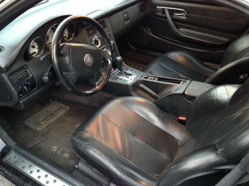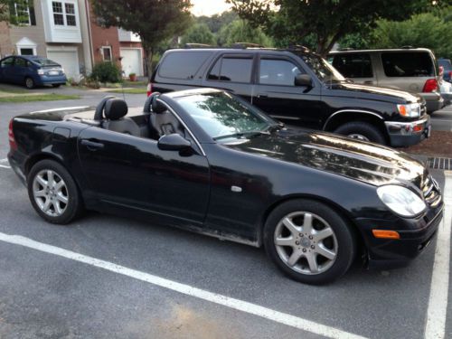 1998 SLK230 Runs great, Top stopped working the other day. Can still be put up and down manually. The pump was replaced last year so it is new and functional. There is a bad line i believe because i can see leaking oil from passenger side of trunk but not near the pump. Check engine light just came on after i filled gas?? I replaced the MAF sensor. 183k miles with maintenance records from a Benz dealer up through 170k. "R" title due to previous owner hitting a deer and cost of front end repairs with labor exceeding cost of what insurance wanted to pay. Car was "rebuilt" and is sound. Passed MD inspection in June of this year so safety of the car is not a question. Passed MD emissions about two weeks ago. I trust to drive this car anywhere. I am buying a home and have 6 cars and some have to go. Sadly this is one of them. Headliner is included with the car but not installed. Passenger seat stitching coming undone on seat bottom. No holes in seats. I have additional photos on request of anything you would like to see.
