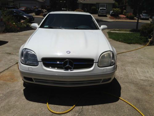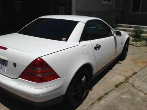 For sale is my 1999 SLK230 with a low reserve. I love this little car, only selling this due to knee surgery, so no manual gear boxes for some time! It has a new serpentine belt, new K&N air filter, new cabin filter and new plugs and oil filter. The roof functions without a problem and I have the clear California title in hand. It has a brand new blue tooth stereo which mates great with my iPhone for music and calls. The paint on the front may need attention at some point, but is fine for day to day driving. The wheels have been replaced with 18" ones and the tires will need replacing. The interior is very comfortable, the rubberized paint is peeling in some spots which is typical for this model and there is a split in the driver seat. This was my daily driver and is a great fun car to drive, with the manual gearbox making it a bit more spirited than the normal automatic. Enjoy and thanks for looking. Buyer is responsible for shipping. |