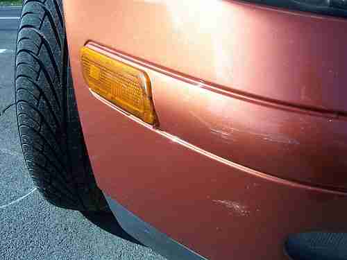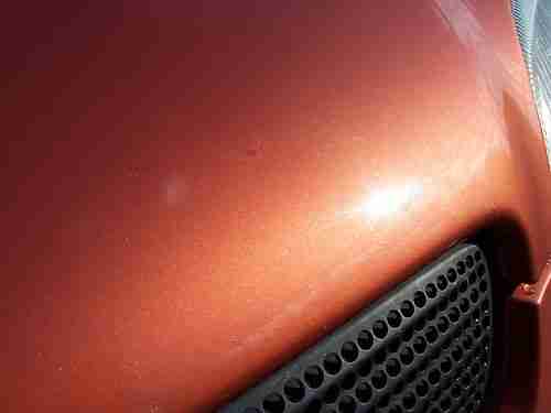 The exterior is in very nice condition. The front and rear bumper covers have very minor normal scuffs and rock chips, normal. The hood has one minor rock chip above the grill that was filled in with a touch up stick. The touch up stick is in the glove box. What looks like damage to the hood closer to the windshield is just cloud reflection from the sky. The fenders, doors, and rear quarters are in great shape. The retractable roof has a minor ding. The decklid is in great shape. The folding mirrors are in good shape, although both have some minor clearcoat fading/wear. The only wheels that come with the car will be the factory 16" aluminum rims. They are in great condition and have a matching set of Michelin Pilot tires with between 50-75% tread.
